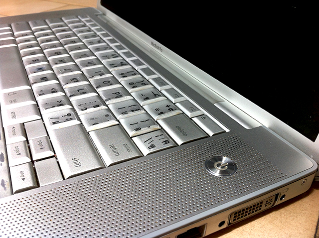 แปะติดเกอร์ไทยให้ Keyboard Back-lit มีไฟสวยงาม ลำโพงเสียงไปทางแหลม ถ้าเปิดสุดเกินไปเสียงจะไม่ไหวละ เครื่องเป็น Snow Leopard 10.6.8 ลง Adobe CS5 ไว้เรียบร้อย แบตเสื่อม SuperDrive ดูดแต่ไม่อ่าน