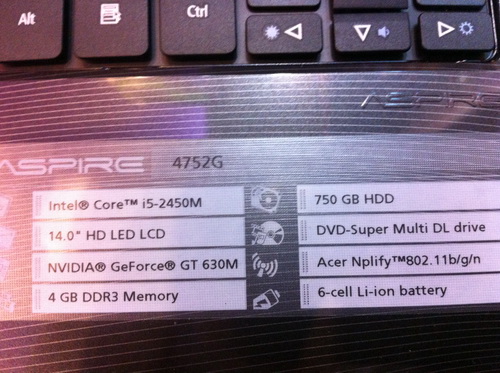 + ตัวนี้ แรม : 4 GB. DDR3 HDD 750 GB CORE I 5 การ์ดจอแยกของ NVIDIA GT 630M ( ทำงานได้ดีเร็วและลื่นเลยครับ )