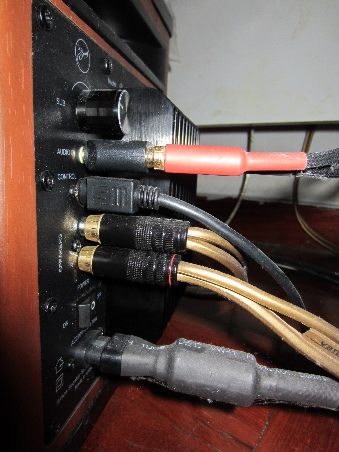 สายลำโพง ทำมาสำหรับ swans m50w โดยเฉพาะ ใช้สายลำโพงของ van den hul รุ่น gold water เข้าหัว rca+pin plug ทั้ง 2 ฝั่งเรียบร้อย