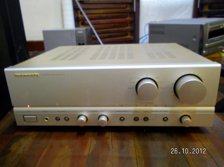 int. marantz pm-50 (สีทอง) เสียงดีตามสไตล์ marantz ต่อลำโพงได้ 2คู่ มีภาค phono สำหรับต่อเครื่องเล่นแผ่นเสียง มีจุดต้องไปแก้ไขคือตรง volume บาลานซ์ เวลาเปิด ต้องงบิดมาตรงประมาณ 9.00 น.จึงจะดังเท่ากัน2ข้าง ปุ่มวอลล่อมอาจจะสกปรก ไปล้างน่าจะหายไม่กี่สตางค์ ราคานี้ลดให้ไปเป็นค่าเช็ค พอดีได้แอมป์ตัวใหม่มาแล้วไม่มีเวลายกไปเช็ค ส่วนระบบอื่นๆใช้งานได้ดี เสียงสะอาด นิ่ง.. ขาย 4200