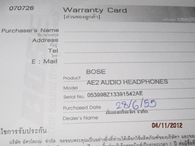 ขาย BOSE AE2 แท้ สภาพดี ซื้อเมื่อเดือน มิ.ย.55 อุปกรณ์พร้อมใบรับประกัน กล่อง ถุงผ้า