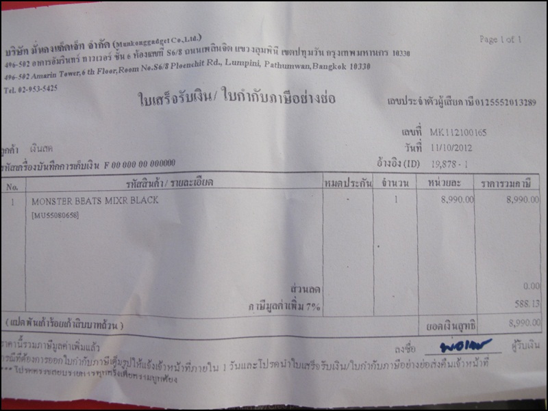 ด้านบนกล่อง หมายเลยตรงกับใบเสร็จ MU55080658