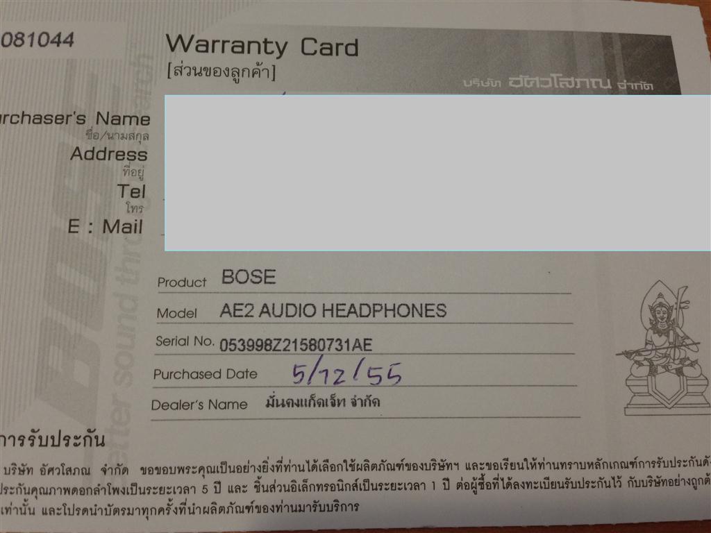 หูฟัง Bose AE2 ซื้อจากร้านมั่นคง วันที่ 5ธค2555 มีใบเสร็จ ครับ
