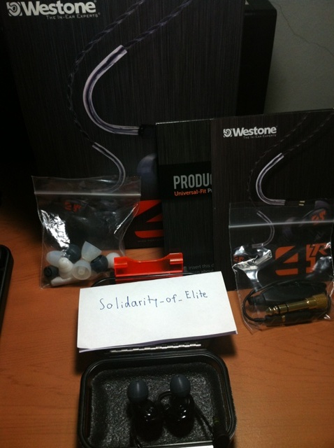 ขออนุญาตขาย Westone W4R เป็นของหิ้ว ผมซื้อมาจาก TAF วันที่ 13 พฤศจิกายน พ.ศ. 2555 ครับ อุปกรณ์มีครบกล่องครับ ยกเว้นจุกโฟมแบบ Standard, Short และ Slim ครับ แต่ผมมีจุกโฟมแบบ Slim 2 คู่ที่ซื้อมาใหม่ยังไม่ได้ใช้ครับ