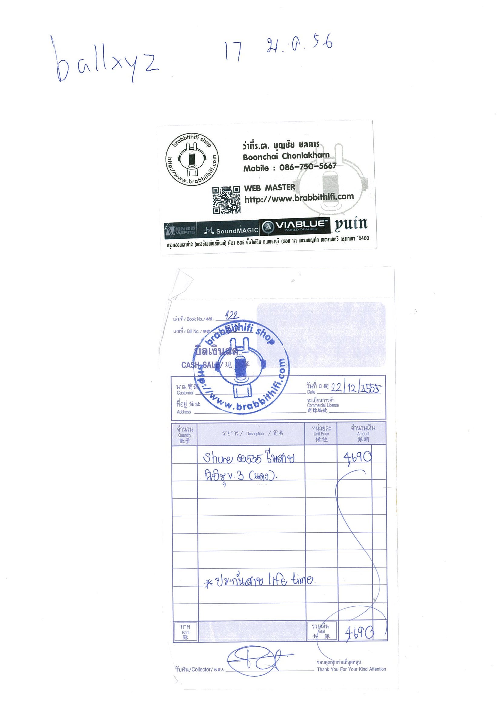 ใบเสร็จร้านครับ แต่พอดีวันนี้ลองเอามาเสียบฟังดูรู้สึกขั้วข้างซ้ายหลวมนิดๆ กำลังหาเวลาเอาไปหูฟังพร้อมสายไปให้พี่ชัยดูว่า เป็นที่ขั้วหูฟังหรือขั้วของสายครับ