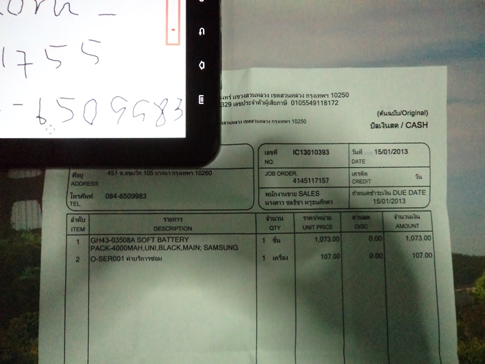 แบต : เพิ่งเปลี่ยนมาเมื่อ 15-01-2556 ที่ศูนย์ samsung มีประกันแบต 3 เดือน